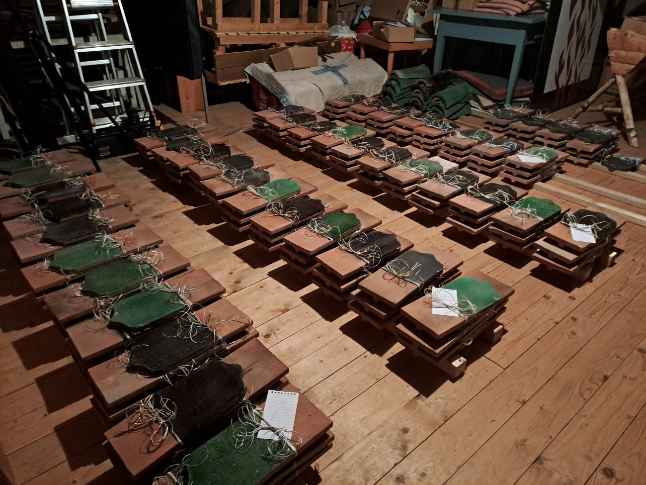 Wir freuen uns, wenn die herabgeholten Ziegel in den Wohnungen oder Gärten unserer Ortschaften einen schönen Platz finden. Die alten Ziegel können für je 30,– Euro erworben werden!